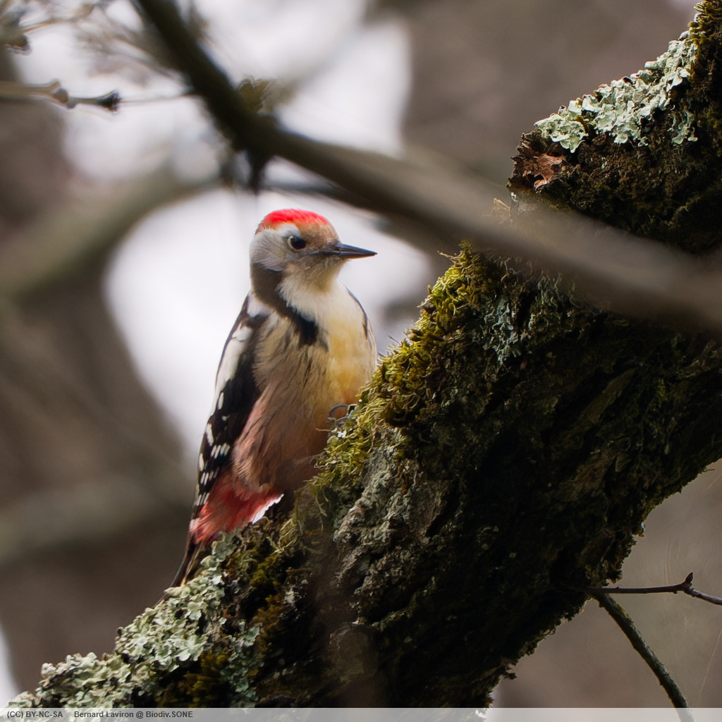 Reconnaissable à son étonnant plumage noir et blanc le pic épeiche tambourine en ce moment pour délimiter son territoire.